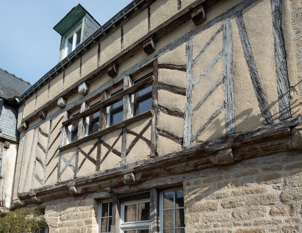 Le contreventement de l'étage se compose de chevrons, d'écharpes et de croix de Saint-André.Immatriculation