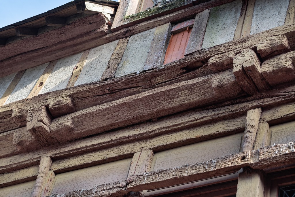 De longues entretoises, simplement chanfreinées avec congés, comblent l'espace entre les deux sablières.Immatriculation