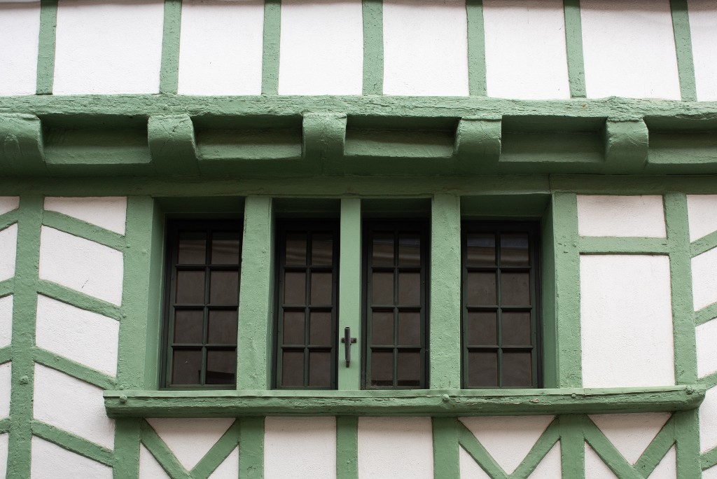 Des entretoises sans aucun décor masquent les espaces entre les solives débordantes.Immatriculation