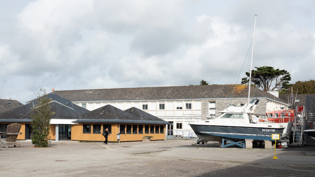 Vue d'ensemble de la cour, prise de l'ouest. Foyer des élèves et services communs - internat.Immatriculation