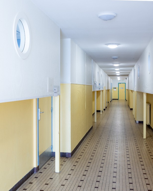 Dégagement central dans l'externat. Yves Guillou et Georges Tourry, architectes, 1959.Immatriculation