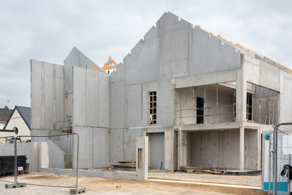 Nouveau service de restauration, en cours de construction photographié en 2025. Archipole, urbanisme et architecture.Immatriculation