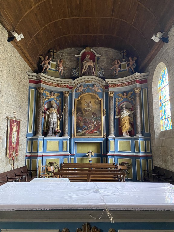 Ensemble du maître-autel : autel, tabernacle, retable ; gradin d'autel, église Saint-Servais (Saint-Servant-sur-Oust),