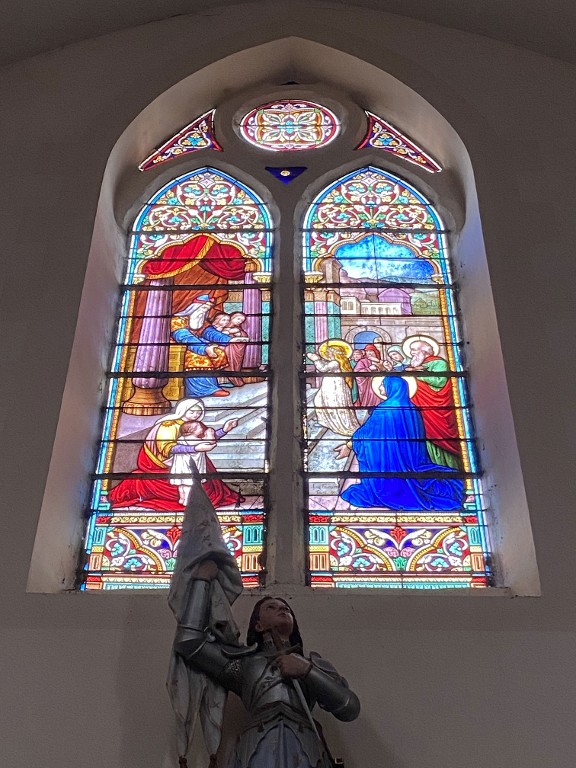 Ensemble de deux verrières à personnages : Présentation de la vierge au temple et Saint Yves, église Saint-Brieuc (Cruguel),