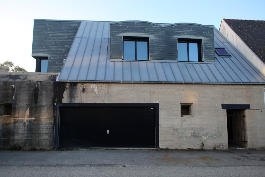 Vue générale d'un bunker-abri de Ploemeur transformé en maison d'habitation (le bunker est photographié depuis le domaine public). Il s'agit d'un Luftschutzbunker, littéralement : abri anti-aérien, souvent abrégé en LSImmatriculation