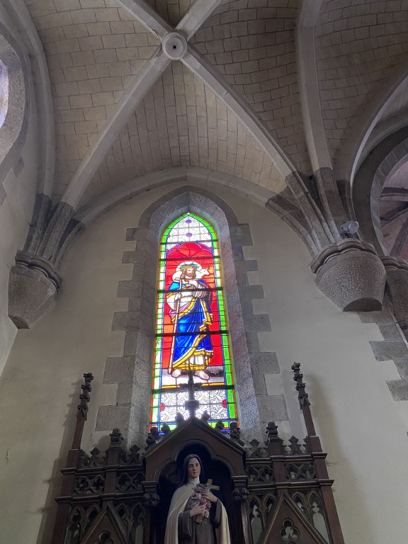 Ensemble de 13 verrières à personnages des baies 0 à 12 : Scènes de la vie et de la Passion du Christ, Saint Louis, Françoise d'Amboise, Vierge à l'Enfant, église paroissiale Notre-Dame (Campénéac),