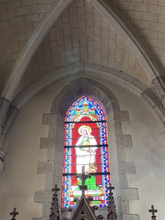Ensemble de 13 verrières à personnages des baies 0 à 12 : Scènes de la vie et de la Passion du Christ, Saint Louis, Françoise d'Amboise, Vierge à l'Enfant, église paroissiale Notre-Dame (Campénéac),