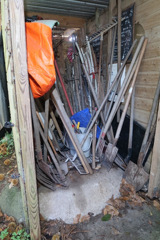 Vue du bunker-poste d'observation et de tir dit Tobruk-Stand est. Le bunker sert d'assise à une remiseImmatriculation