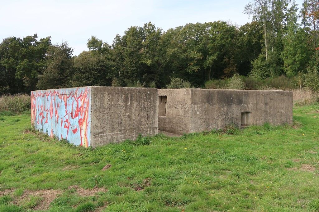Vue du bunker-cuve de type Fl243a (IV) pour canon antiaérien de 10.5 cm depuis le sud-est. Du fait de sa forte visibilité, il sert de support à des graffitisImmatriculation