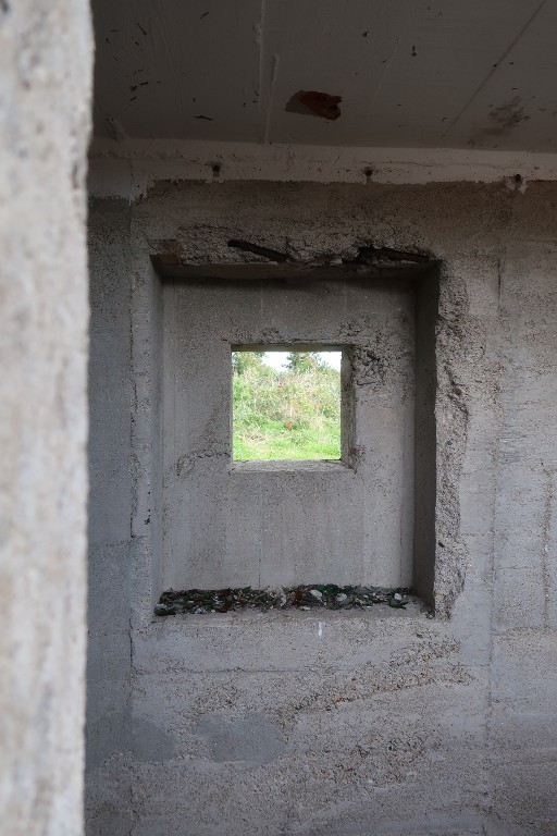Vue du bunker-cuve de type Fl243a (IV) pour canon antiaérien de 10.5 cm : ouverture de tir depuis l'intérieur. Son volet blindé ne semble pas avoir été installéImmatriculation