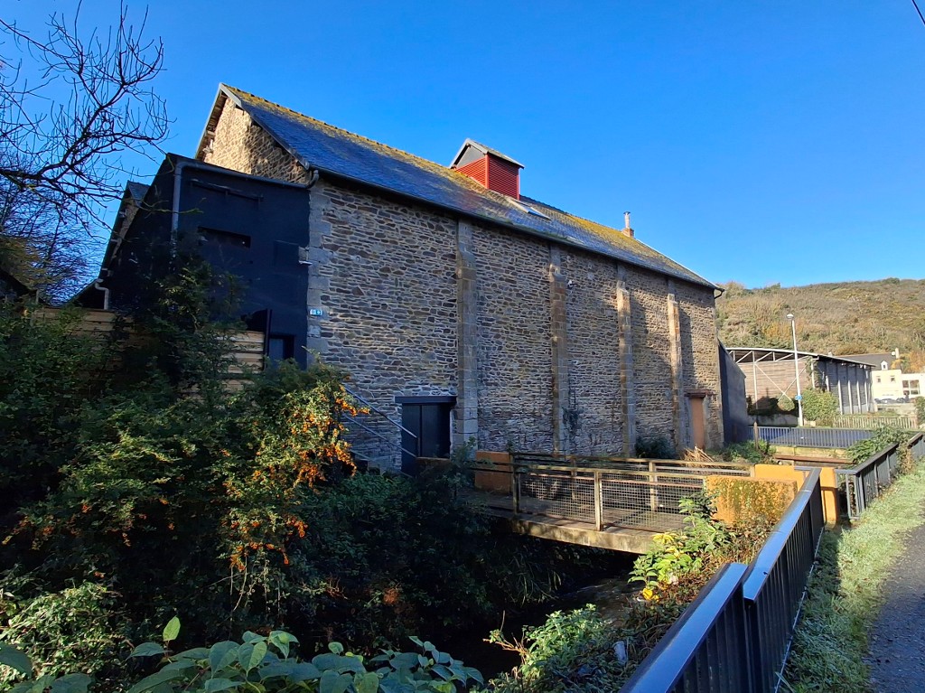 Ancien grenier à blé, élévation est, passerelle enjambant le Gouëdic créée en 1999 (sortie de secours d'un établissement recevant du public)Immatriculation
