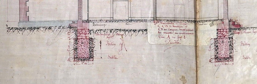 Projet de construction de logement pour le maître de port et les éclusiers : annotations sur les matérieux (9 octobre 1888)Immatriculation