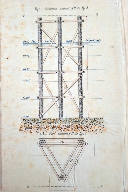 Archives départementales des Côtes-d'Armor, S. supp. 258, Projet de pont tournant : plans et devis.