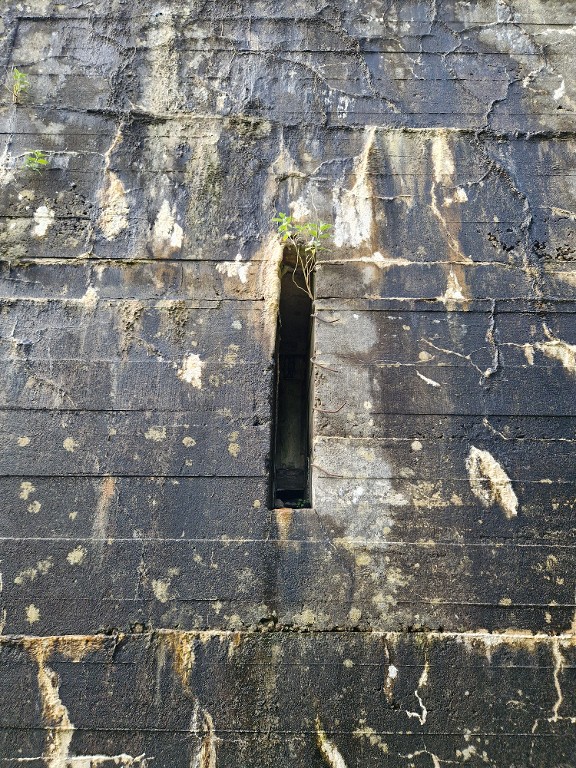 Vue de détail du pignon nord : jour vertical implanté à mi-hauteurImmatriculation