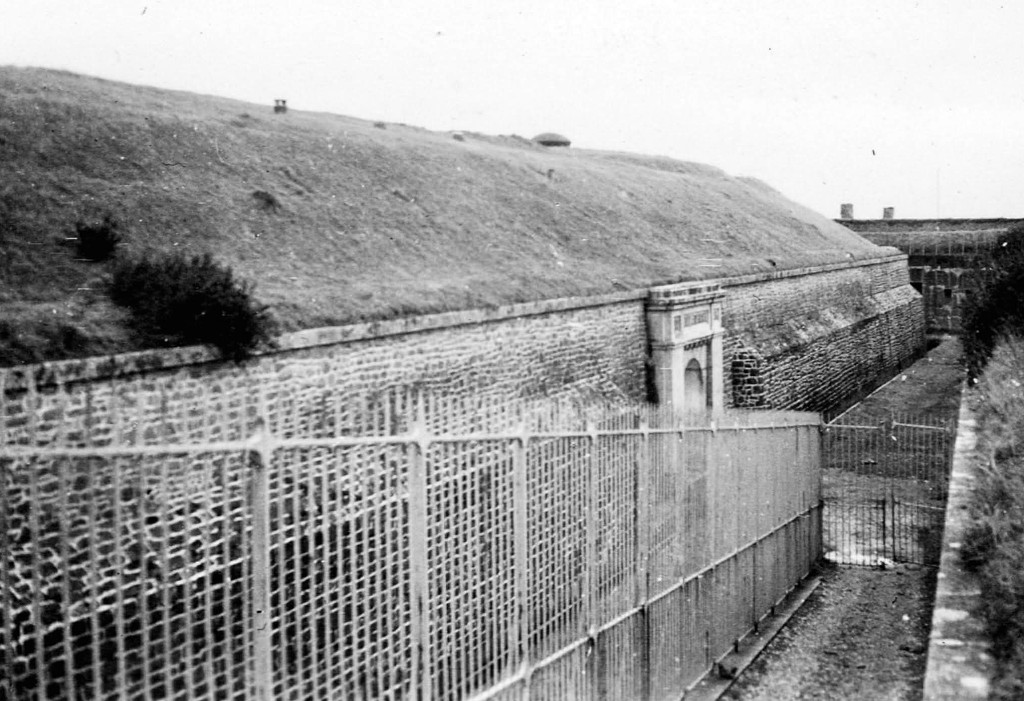 Vue du réduit depuis le nord-est : rampe d'accès au fossé et entrée aménagées dans l'élévation nord-ouest (collection : Lionel Pracht)Immatriculation