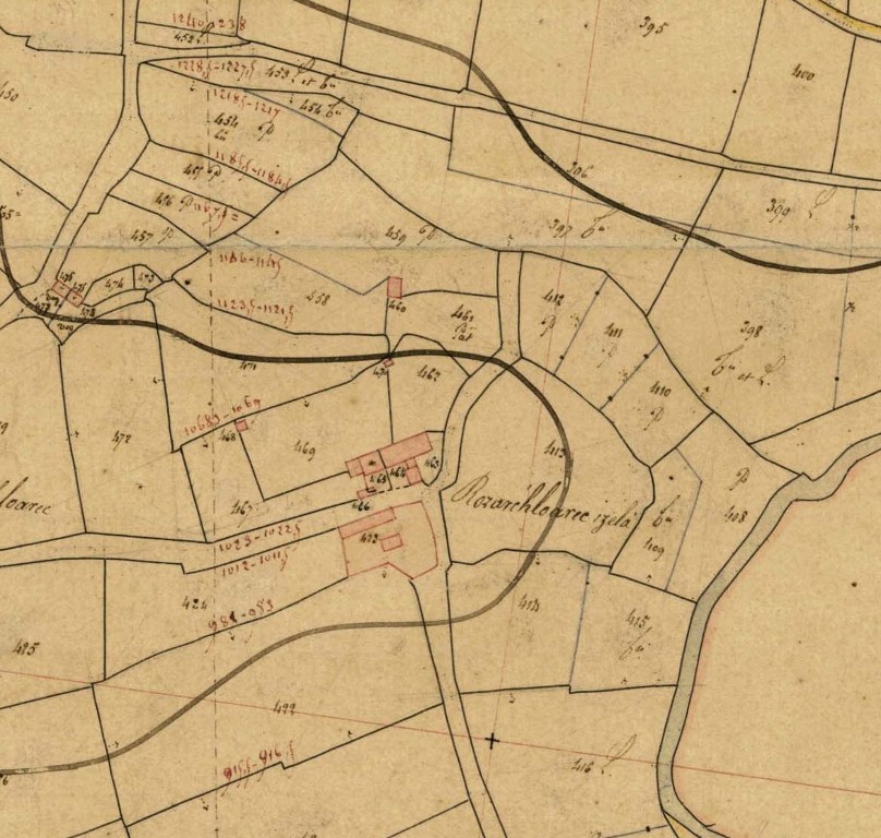 Rozarc'hloarec Izela en 1828. Extrait du cadastre ancien, section B1 (Archives départementales du Finistère, série 3 P 77/1)Immatriculation