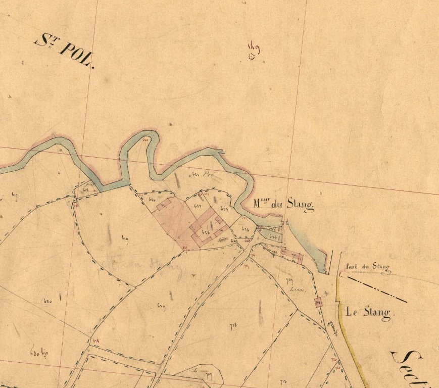 Le site du Stang en 1847. Extrait du cadastre ancien, section C2 (Archives départementales du Finistère, série 3 P 193/2/33)Immatriculation