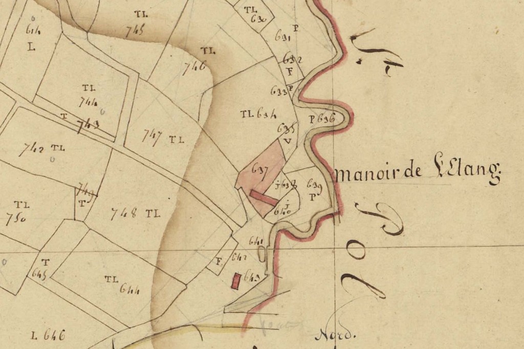Le site du manoir de l'Etang (Le Stang) en 1810. Extrait du cadastre ancien, section C2 (Archives départementales du Finistère, série 3 P 193/1/12)Immatriculation
