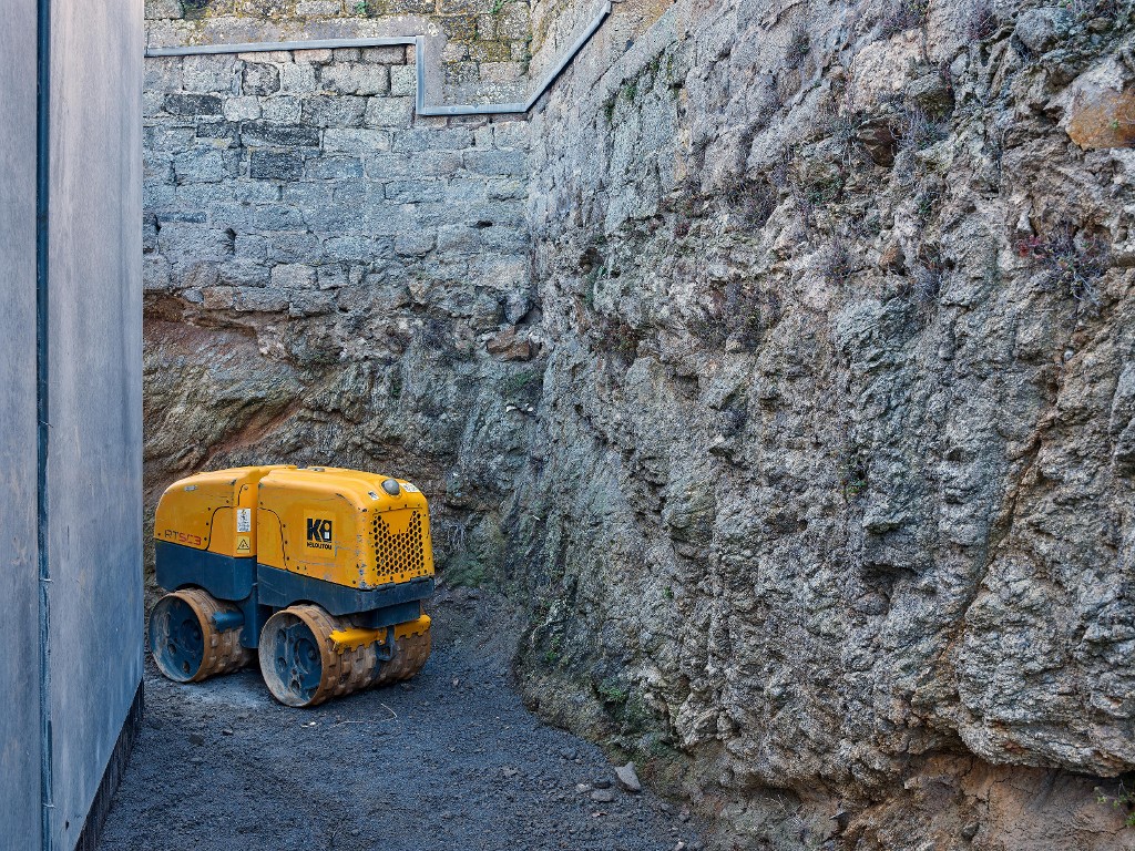 Vue de détail de l'intérieur de l'escarpe (couverture photographique du 22 janvier 2026). A gauche, le chantier de la gare maritime du NayeImmatriculation