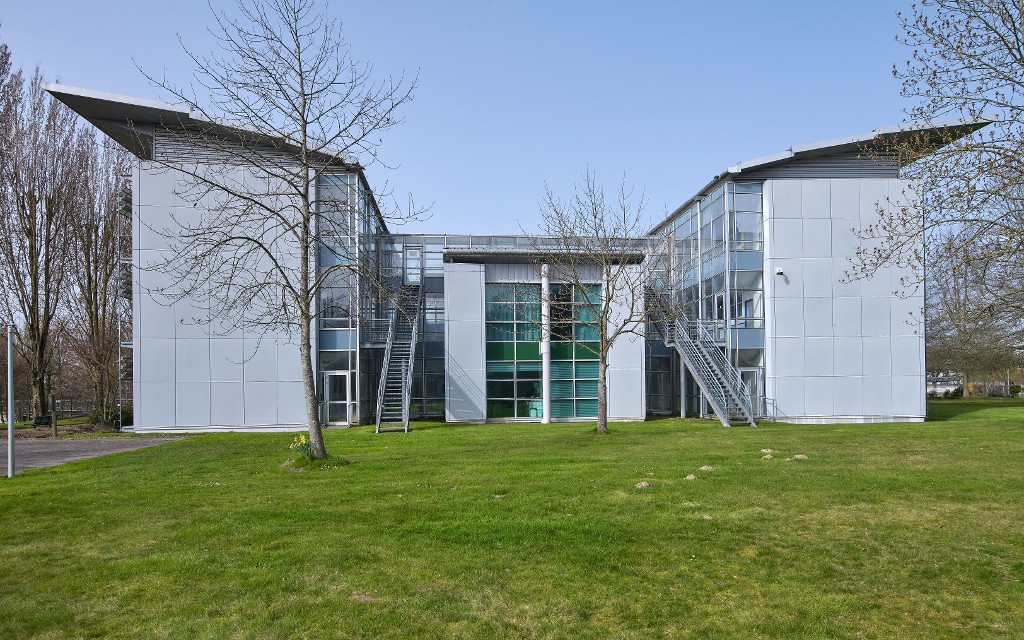 Façade est du bâtiment principal. Joël Y. Gautier, architecte, 1992.Immatriculation