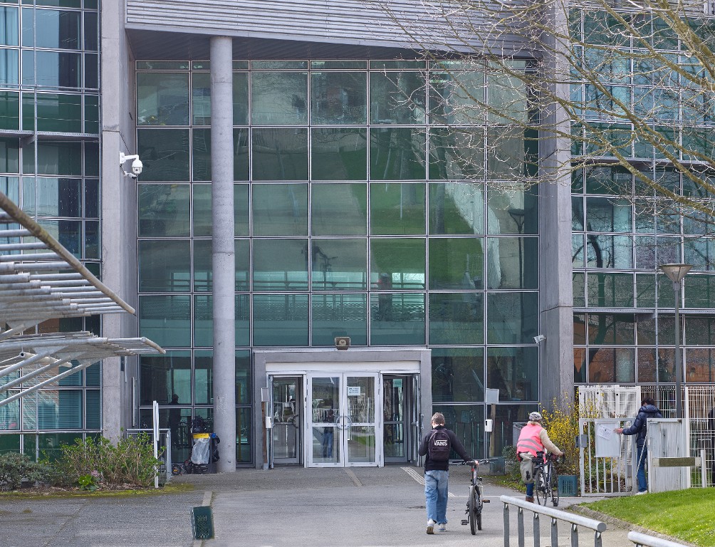 Entrée nord du bâtiment principal. Joël Y. Gautier, architecte, 1992.Immatriculation