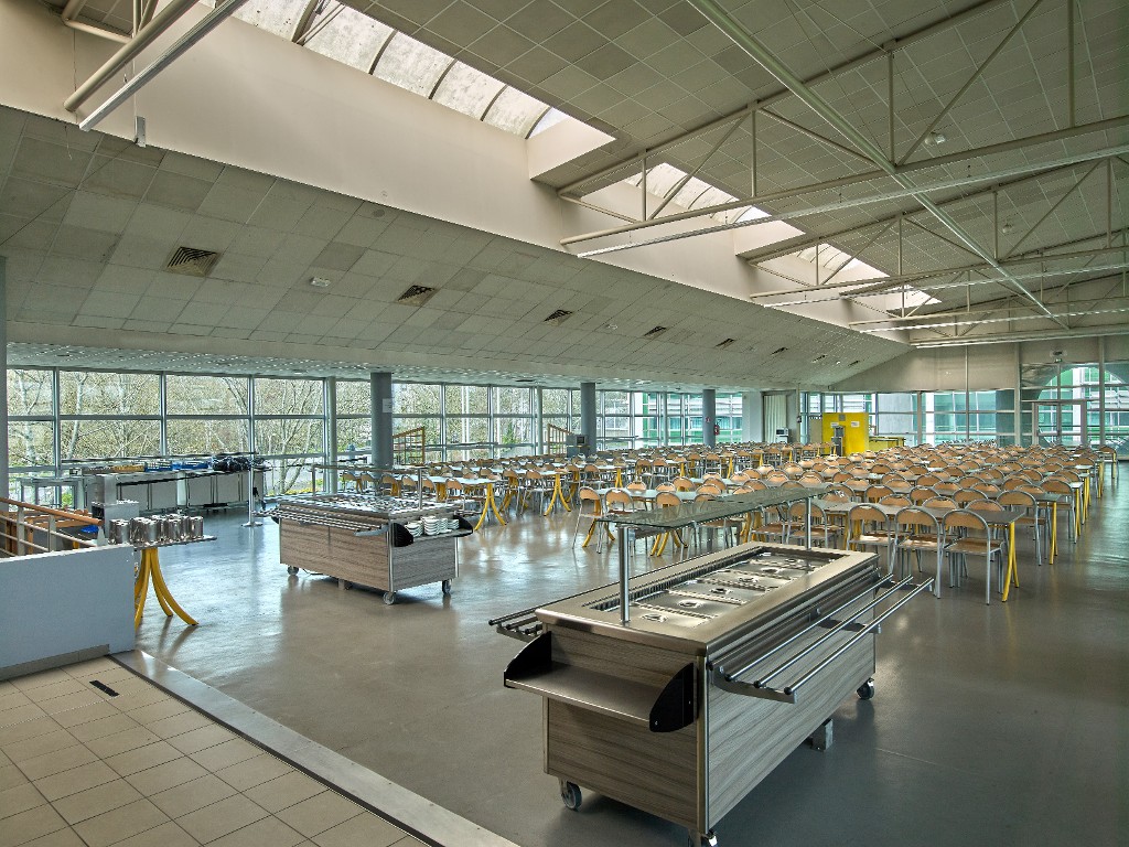 Restauration scolaire : le "scramble" et le réfectoire. Joël Y. Gautier, architecte, 1992.Immatriculation