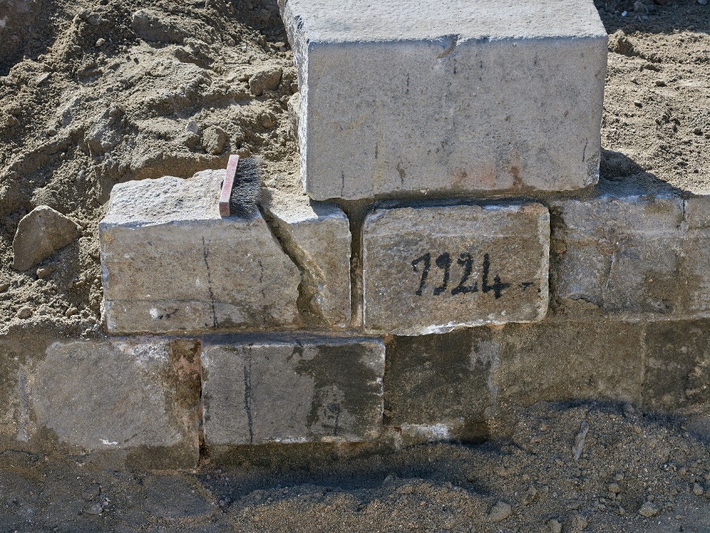 Vue de lopération archéologique réalisée sous la responsabilité de Ronan Louessard - INRAP avec un suivi scientifique et technique du DRASSM (couverture photographique du 11 mars 2026). La digue est datée de 1924, date des travaux de la grande écluseImmatriculation