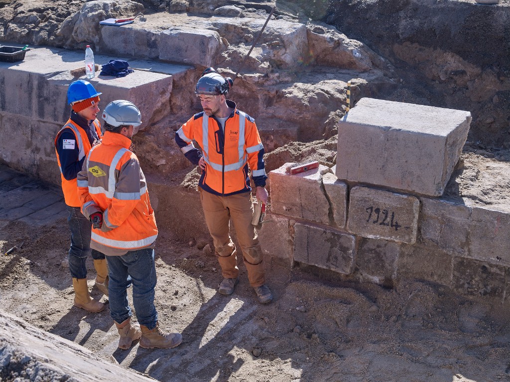 Vue de lopération archéologique réalisée sous la responsabilité de Ronan Louessard - INRAP avec un suivi scientifique et technique du DRASSM (couverture photographique du 11 mars 2026). La digue est datée de 1924, date des travaux de la grande écluseImmatriculation