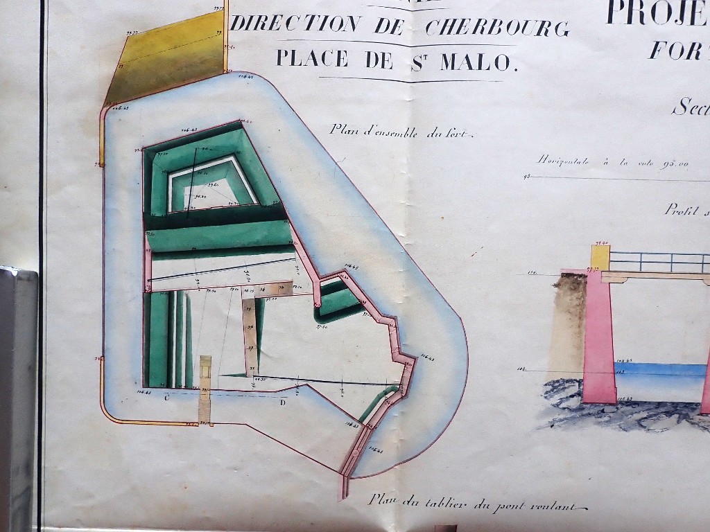 Saint-Malo. 1840-1844. Projets des travaux à effectuer aux fortifications et aux bâtiments militaires de la place, et aux batteries de côtes en dépendant : mémoires, états, correspondance, plans.