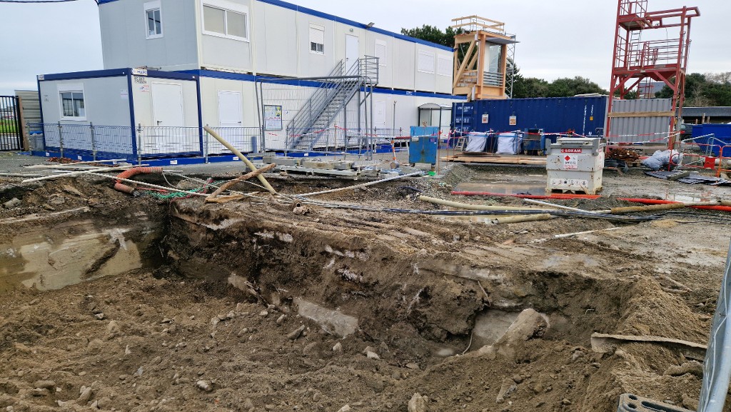 Vue de situation depuis le nord-ouest (couverture photographique du 17 décembre 2025). Seule la dalle de couverture est visible sous le remblaiImmatriculation