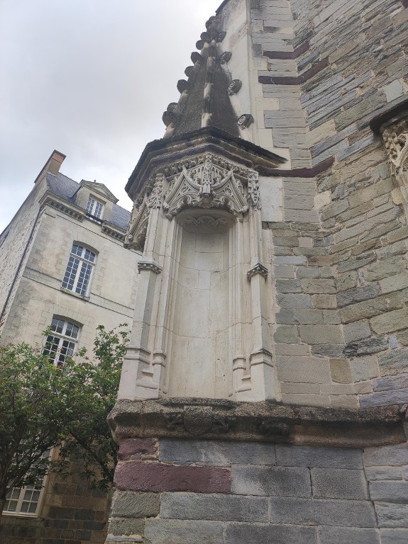 Détail du contrefort creusé de niches sculptées à l'angle des rue Saint-Yves et Le BouteillerImmatriculation
