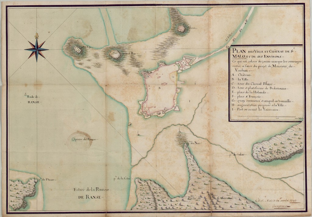 Plan des ville et château de Saint-Malo et de ses environs par l'ingénieur Garengeau, 29 octobre 1692Immatriculation