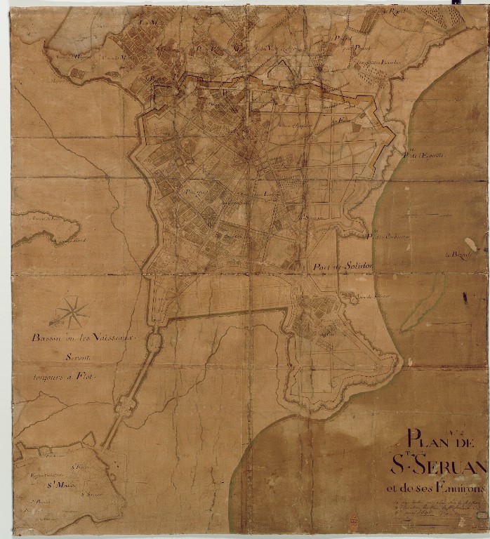 Plan de Saint-Servan et de ses environs (avec les fortifications et distribution des rues), commenté et signé par Vauban, 6 avril 1698Immatriculation