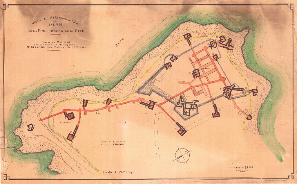 Plan du fort de la Cité d'Aleth par S. Brut, géomètre-expert à Saint-Servan-sur-Mer, mai 1946Immatriculation
