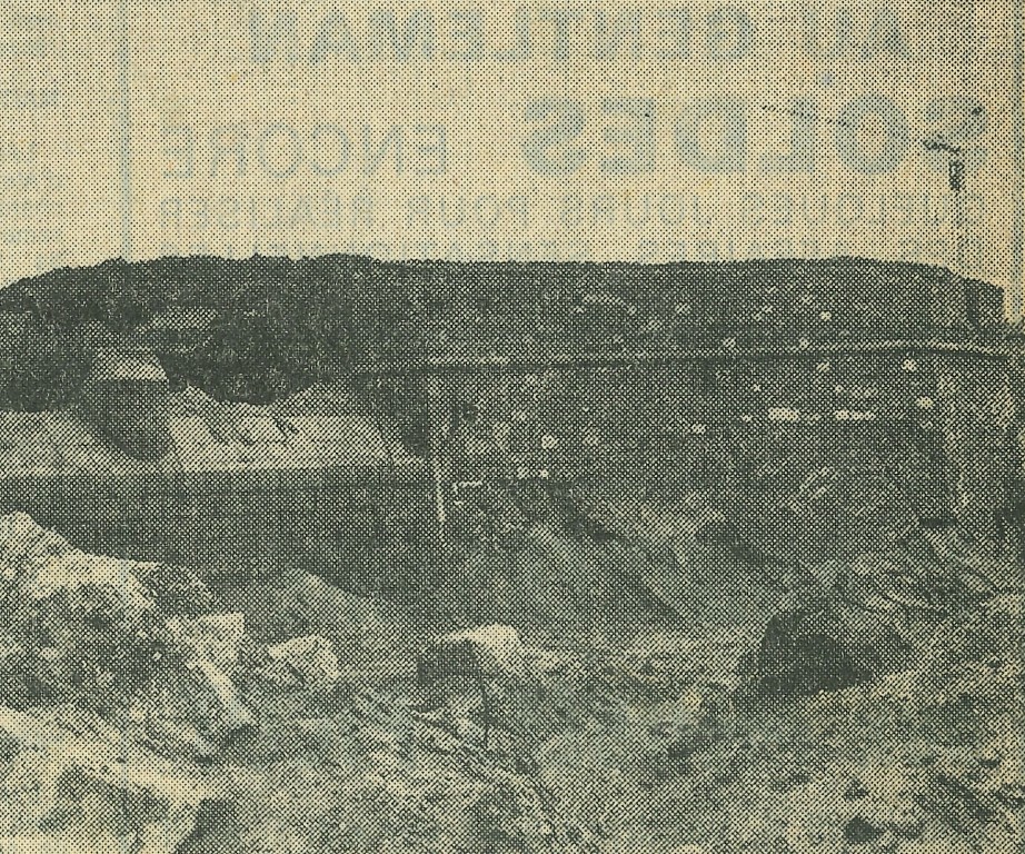 Vue générale depuis l'ouest-nord-ouest, vers 1975. A signaler : la dame tronquée : il manque trois assises de pierre de taille de graniteImmatriculation