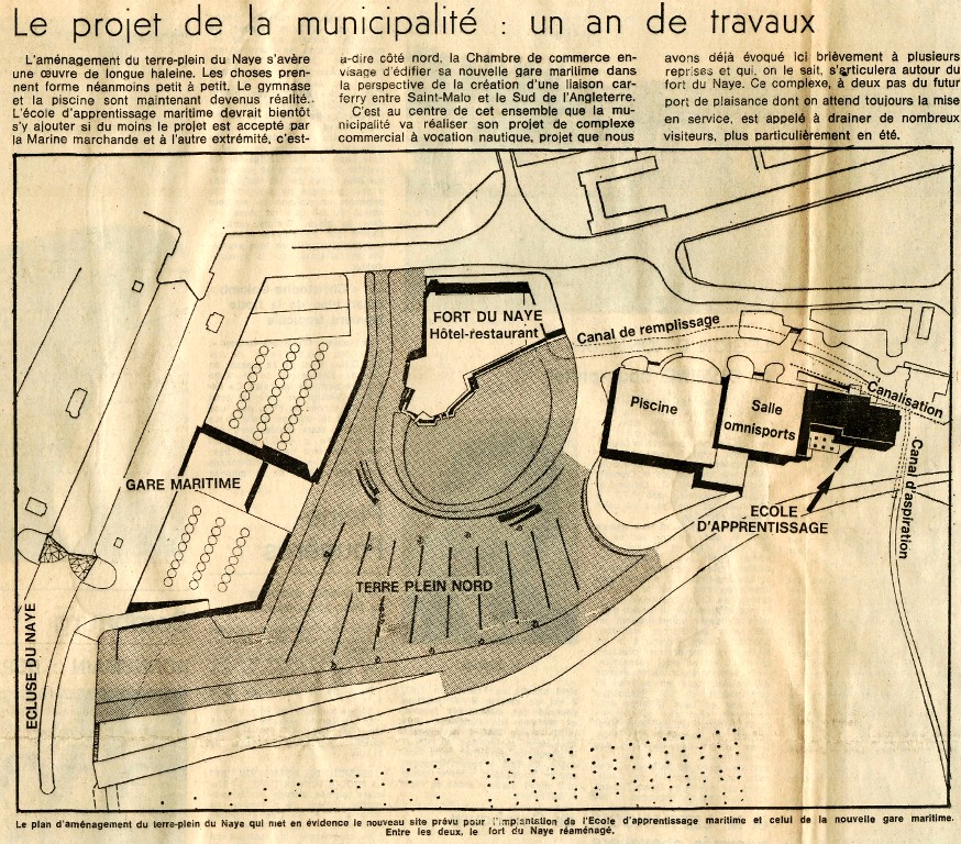 Le fort du Naye. Un complexe commercial à vocation nautique va y être aménagé. Le projet de la municipalité : un an de travaux. Extrait de l'article du journal Ouest France, 3 janvier 1975Immatriculation