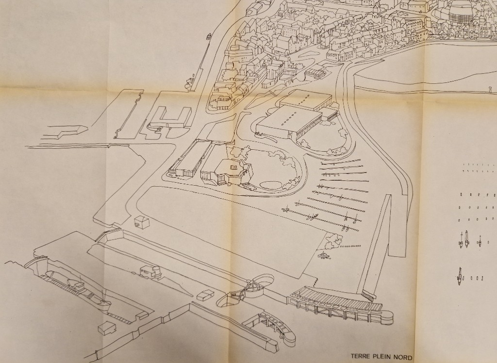 Perspective de l'aménagement du fort du Naye à Saint-Malo par le cabinet d'architectes - urbanistes J. Denieuil - M. Marty - G. Paoli à Neuilly-sur-Seine, 21 janvier 1975Immatriculation
