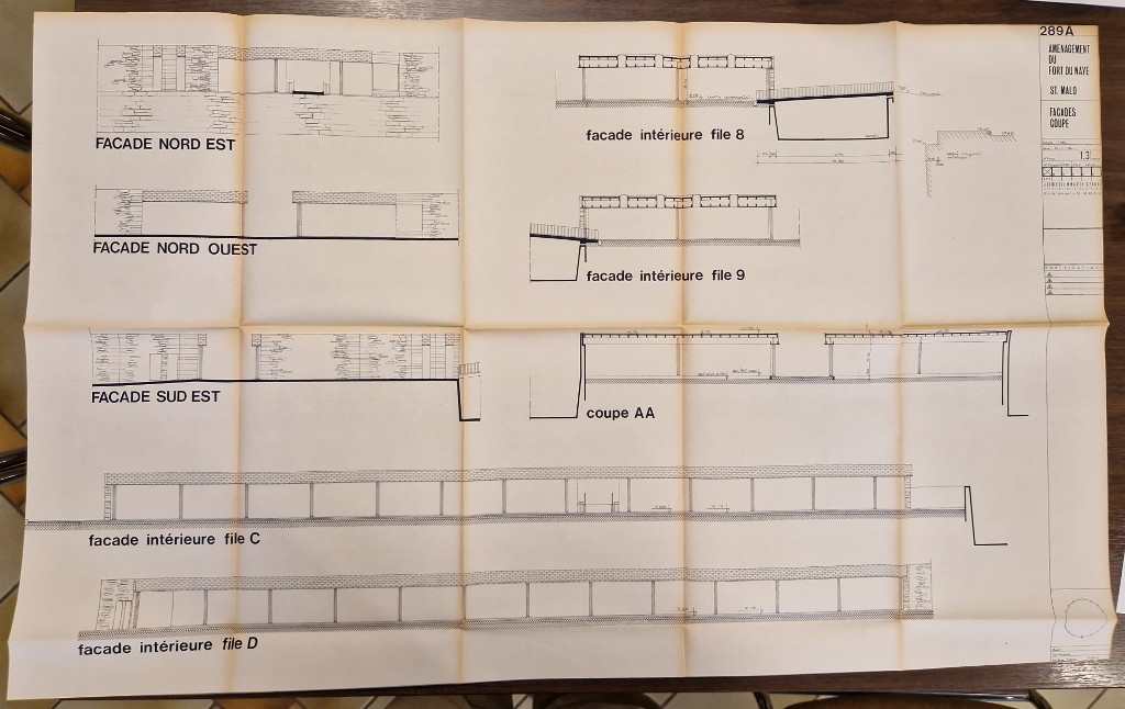 Elévations et coupes des aménagements du fort du Naye par le cabinet d'architectes - urbanistes J. Denieuil - M. Marty - G. Paoli à Neuilly-sur-Seine, 5 novembre 1976Immatriculation