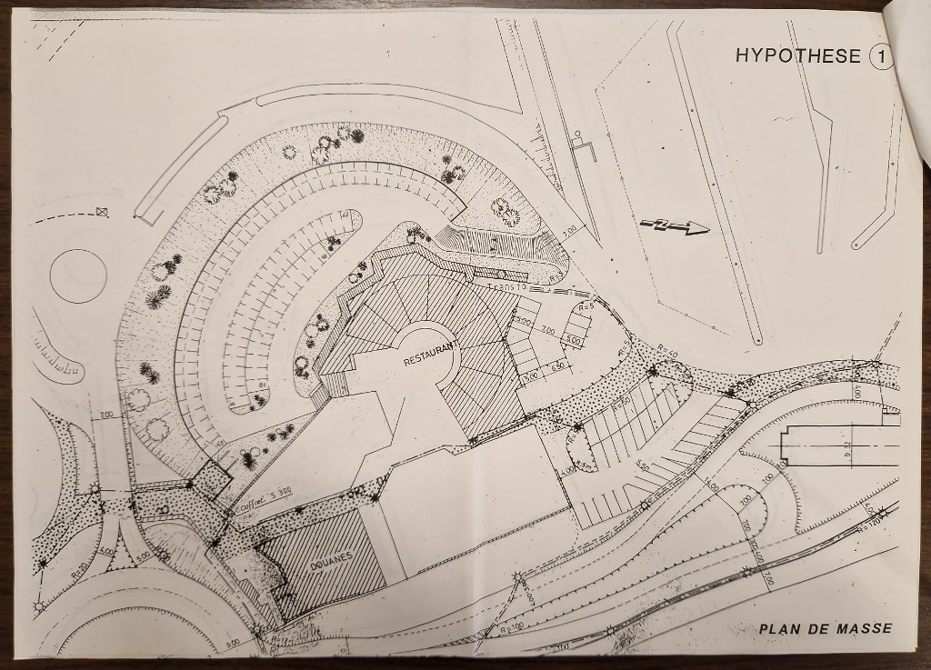 Esquisse d'aménagement des douves du fort du Naye par la Ville de Saint-Malo : hypothèse n° 1, 8 octobre 1992. Dans le fort se trouve les Douanes et le restaurant inter-administratifImmatriculation
