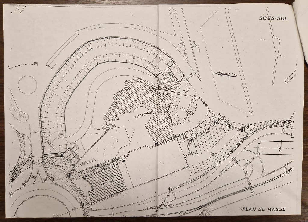 Esquisse d'aménagement des douves du fort du Naye par la Ville de Saint-Malo : sous-sol, 8 octobre 1992. Dans le fort se trouve les Douanes et le restaurant inter-administratifImmatriculation