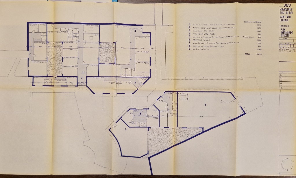 Aménagement du fort du Naye par le cabinet d'architectes - urbanistes J. Denieuil - M. Marty - G. Paoli : plan intérieur des bureaux, 14 mai 1982Immatriculation