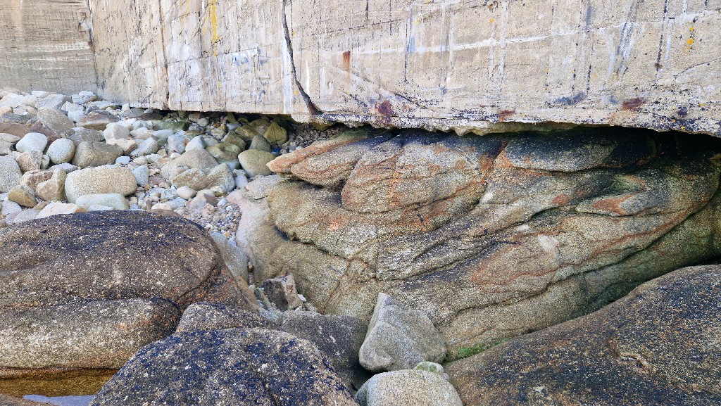 Vue de détail au sud de la grève. Le mur apparaît sapéImmatriculation