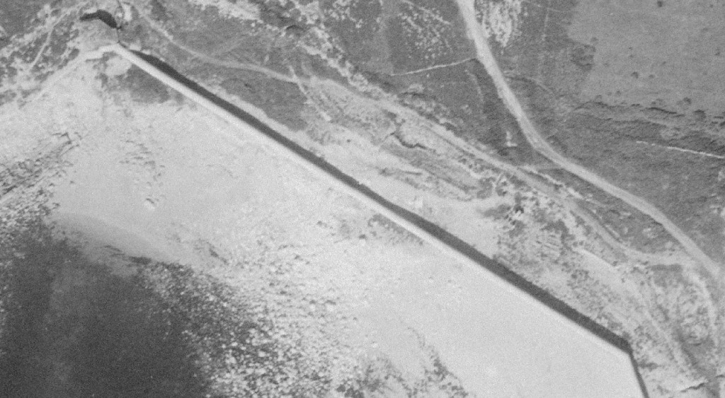 Vue aérienne verticale, 1948 : détail de la partie nord avec le bunker-casemate de type 505 pour canon antichar qui prenait en enfilade la grèveImmatriculation