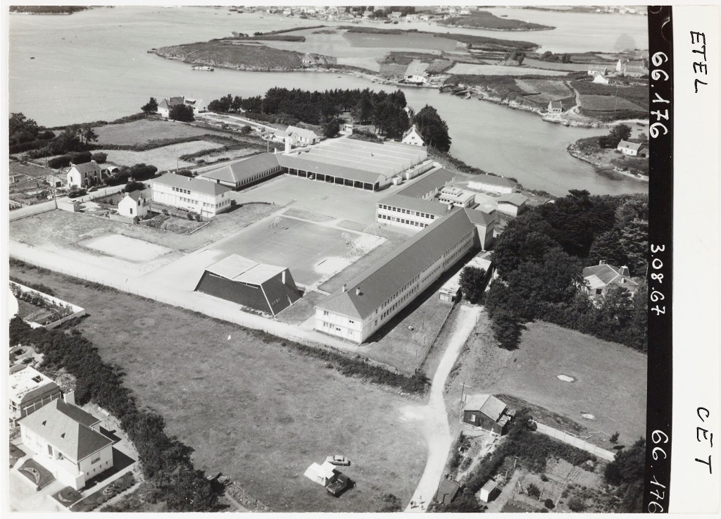 Musée de Bretagne (Rennes) : 971.0037.12095.2 ; 971.0037.12096.2 ; 971.0037.12097.2 ; 971.0037.12098.2. Heurtier, Vue aérienne d'ensemble du CET d'Etel, 1967