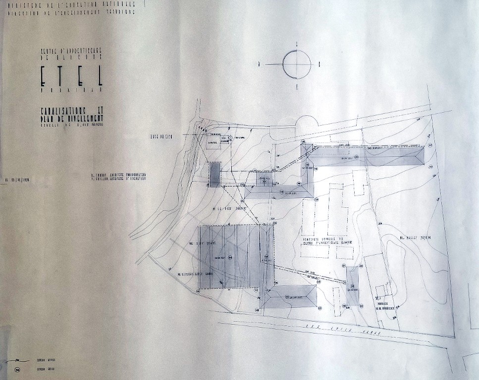 Archives départementales du Morbihan : 110 J 52. Guillou [Y.] et Tourry [G.], Jeu de plans du centre d'apprentissage de garçons d'Etel, 1958-1959.