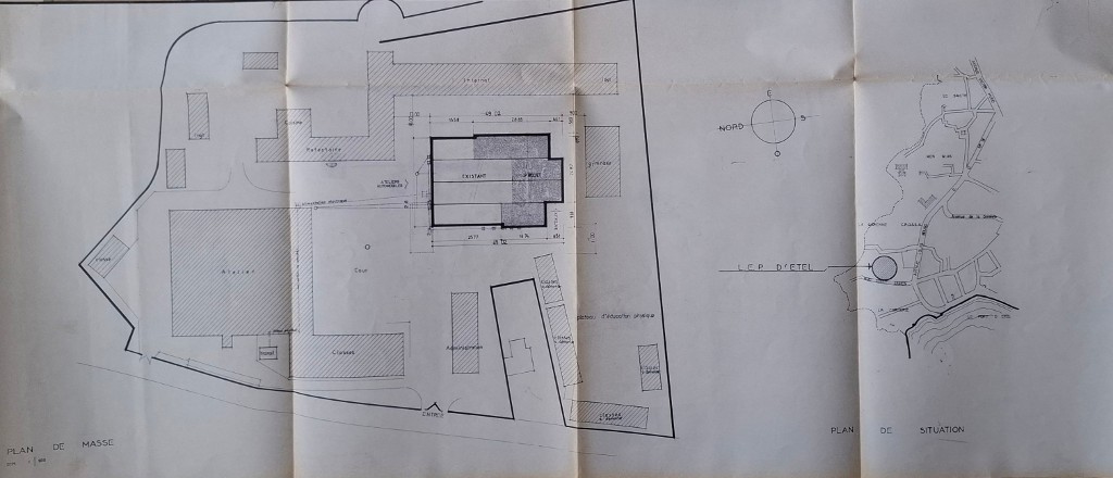 Plan de la première extension des ateliers bateaux. Maxime Joliff, architecte, 1989.Immatriculation