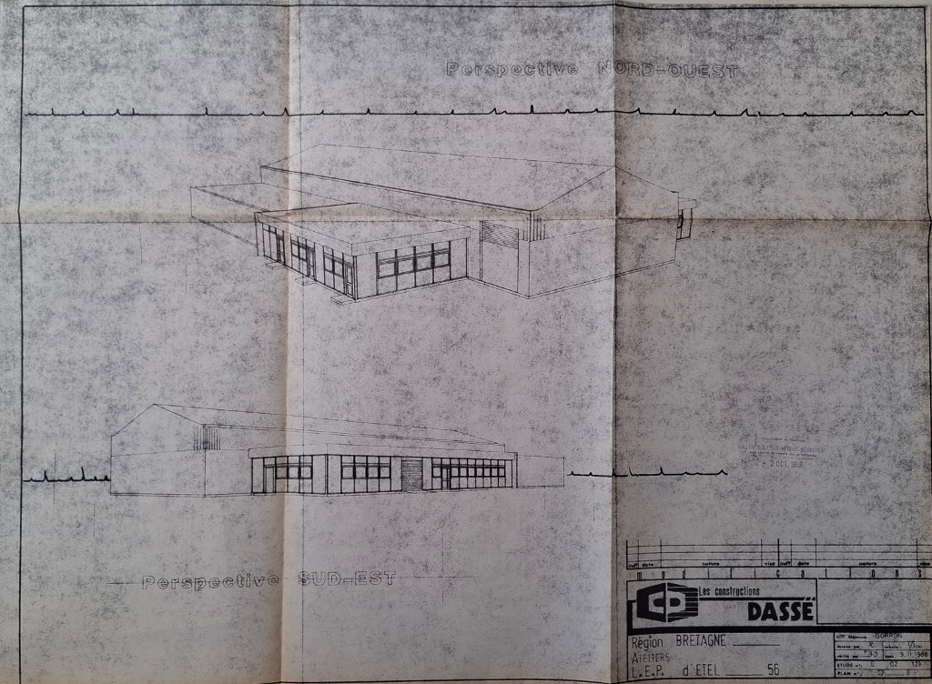 Axonométrie de la première extension des ateliers bateaux. Maxime Joliff, architecte, 1989.Immatriculation
