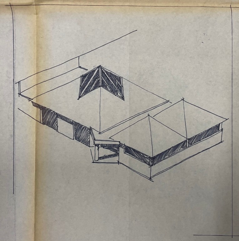 Région Bretagne (Service des archives) : 209W156. Joliff [Christian], Axonométrie, plans et élévations du foyer des élèves, 1990