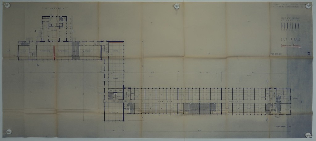 Plan de masse avec projet d'implantation de la "décoration : peinture". Yves Guillou, architecte, 1960.Immatriculation