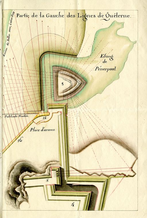 Ouvrages extérieurs de Brest : mémoire sur la fermeture de la gauche des Lignes de Quélern, la lunette cotée 8 étant supposée supprimée, 27 octobre 1779 par De Caux